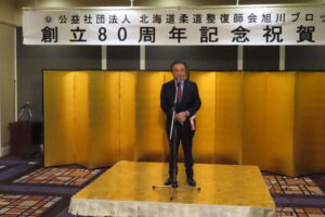 高山会長は北整関係として、日整全国少年柔道大会の開催、生活保護者に対して受診の働きかけ、学校問題について、日整関係としては学術大会規定、FTPサーバーの一元化について話されました。