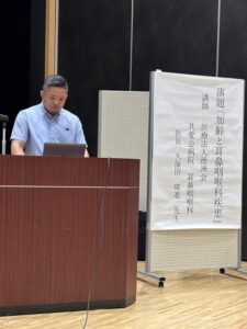 河井学術部長の司会のもと、稲垣会長より講師の先生のご紹介のあと、「加齢と耳鼻咽喉科疾患」と題した講演を久保田瑛進先生にして頂きました。加齢と耳、鼻、喉の疾患について説明していただき特に喉の疾患では頚部にはリンパ節が多数存在するので注意が必要だとも仰っていました。私たち柔道整復師も高齢の方や、頚部を受傷し来院される方もいるのでとても有意義な講演となりました。