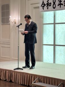 令和8年1月17日(土)に函館ブロック新年交礼会が行われました。午後5時半より清水副会長の開催宣言で始まり、稲垣会長の年頭の挨拶の後、ご来賓を代表し鈴木康弘函館市医師会理事、向山淳衆議院議員、冨原亮道議会議員、藤井辰吉道議会議員よりお祝いのご挨拶をいただきました。祝宴中の余興では村田会員司会によるビンゴ大会が行われ、大変盛り上がりのある余興となりました。結びに永澤雷太先生による乾杯のご挨拶、堀江副会長の閉会の辞で終了しました。