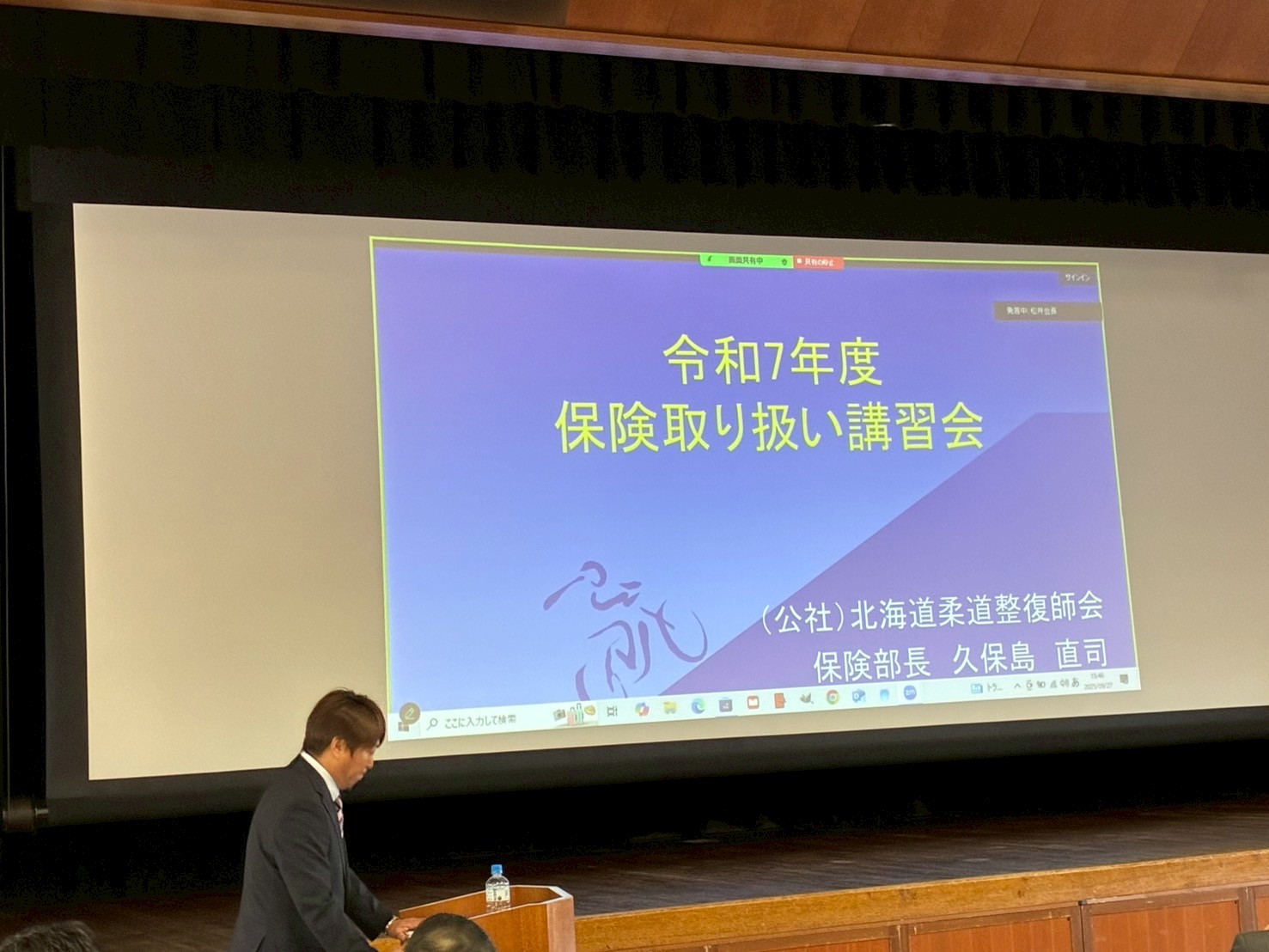 はじめに森保険部長から新旧レセプト用紙について、オンライン資格確認、広告ガイドライン、院内掲示、日本スポーツ振興、労災と自賠責について説明があり、その後北海道柔道整復師会本部の久保島保健部長によるWEBでの本部保健指導がおこなわれました。