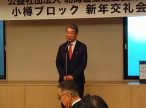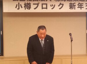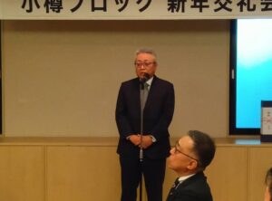 令和8年小樽ブロック新年会が大川原副会長の開会の辞により開催されました。まず鶴田会長の挨拶がありました。