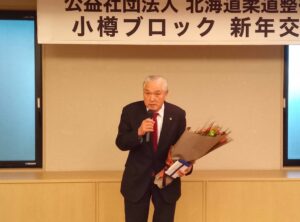 最後に、日整会長よりお祝い、花束贈呈と終始和やかな中、小樽ブロック小川哲司相談役の閉会の挨拶で終了となりました。