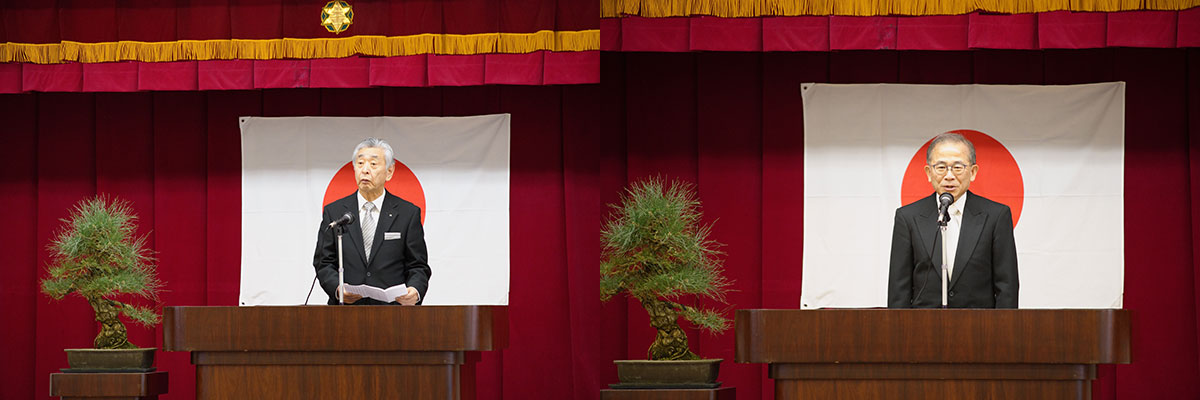 教職員表彰の後、校主である高山訓正北整会長の挨拶、當瀬規嗣学校長より式辞、筒井寛幸同窓会々長より挨拶をいただき、50年近い歴史に幕を下ろしました。